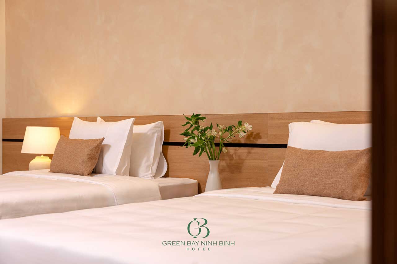 The Deluxe Twin Room at Green Bay Hotel Ninh Binh offers a perfect blend of comfort, elegance, and modern convenience. Thoughtfully designed with contemporary interiors, the room features two comfortable single beds, making it an ideal choice for friends, colleagues, or family members traveling together.